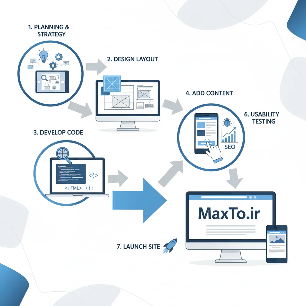 - آزمون و تحویل: قبل از انتشار، سایت باید تست شود تا ایرادات برطرف گردد.